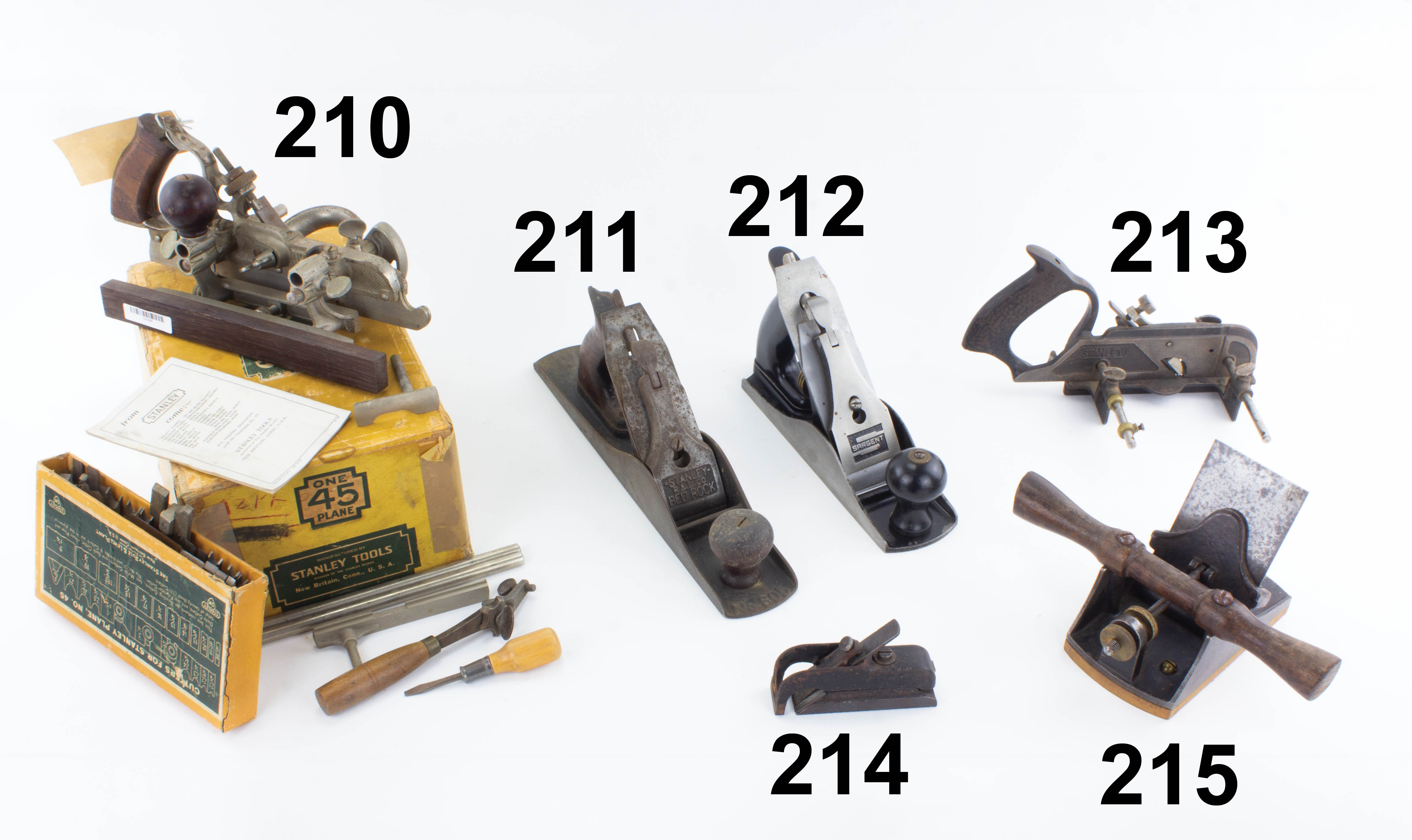 7502-212 SARGENT smoothing plane. Late model with S mark on tote. 9" sole and 2" cutter. Large chip from backside of knob, wood and metal otherwise clean. Japanning 90%. Good- (SJN161) 50-100