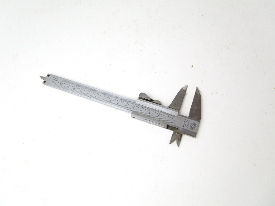 Web05-279 MAUSER stainless steel calipers. Backside says it was made in Germany for Scherr-Tumico followed by several major US cities, 8" long stem with two sets of jaws, could use a little grease. (MAG227)