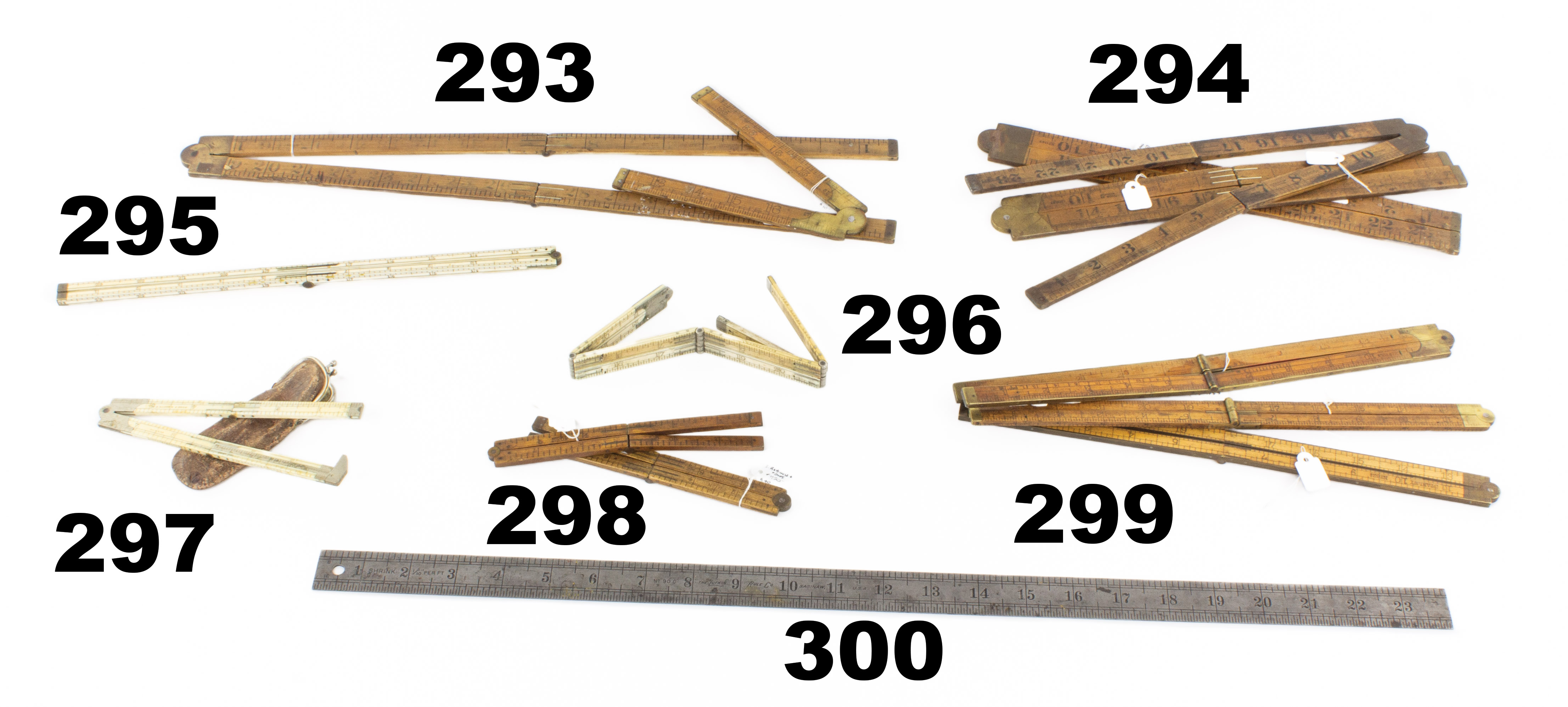 7501-297 J. RABONE & SONS ivory caliper rule. Four-fold, one-foot with German silver caliper. Very lightly yellowed but straight and tight in original leather pouch. Good+ (UCR) 125-250