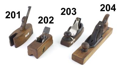 7403-202 Sole box chamfer plane. Looks English, marked with user name, sole box is iron with adjustment screws on side, 6" long with 1-1/2" Marsden Bros. cutter that has been screwed into throat. Wood clean, a few minor scrapes. Unusual. Good (CBM435) 50-100