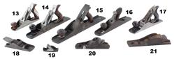 7501-143 Lot of two No. 2 size smoothing planes. One is LAKESIDE with original marked cutter, light scratching on sole but otherwise clean. The other is MACINTOSH & HEATHER with original cutter, green stained tote and knob have moderate wear, light scratching on sole. Good (NPO642,643) 150-300