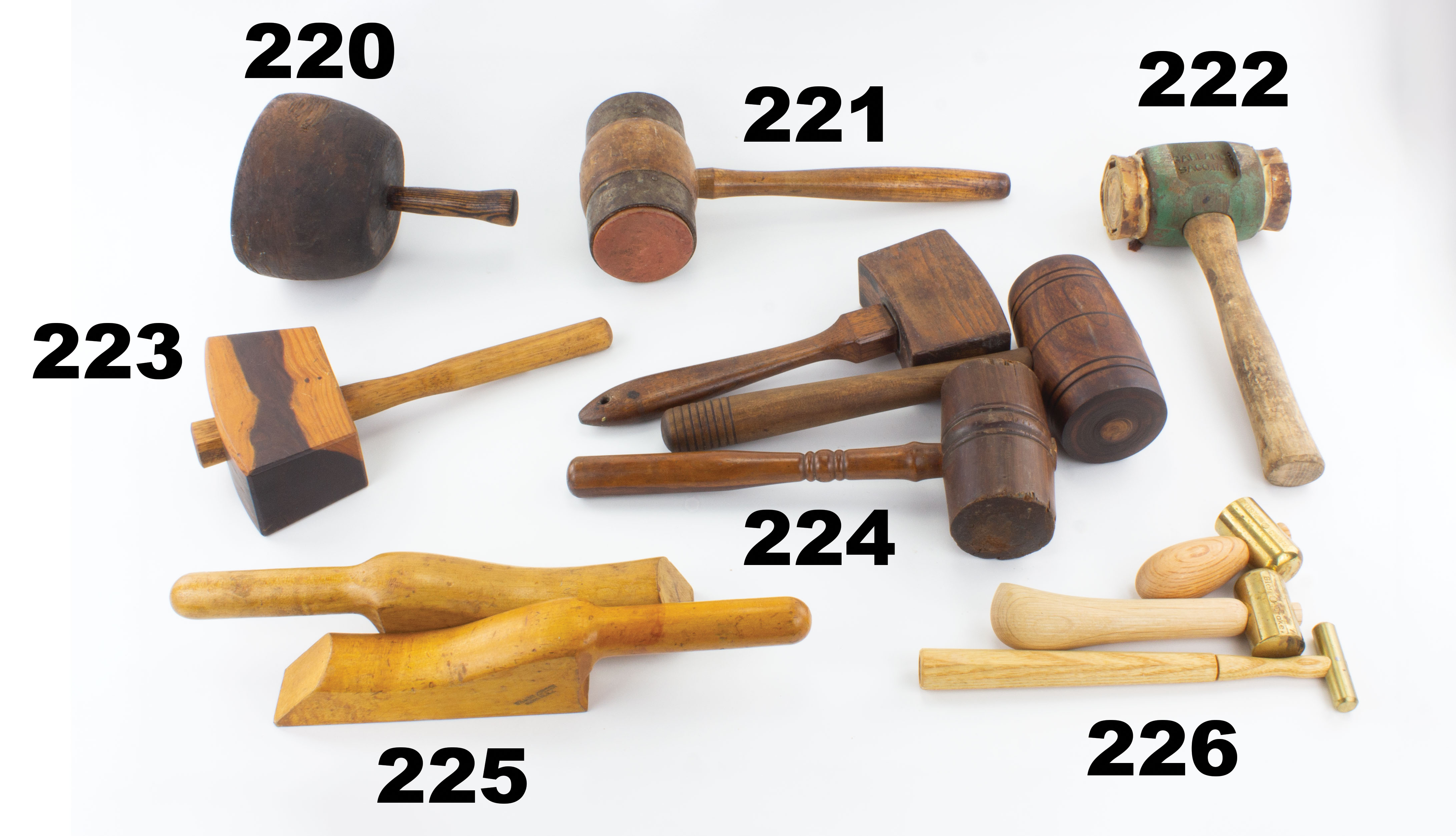 7501-223 Carver's mallet. Rosewood head with attractive sapwood streak. 6-1/2" long with 9" wooden handle. One scuff otherwise appears new and unused. Good+ (GRG469) 30-60
