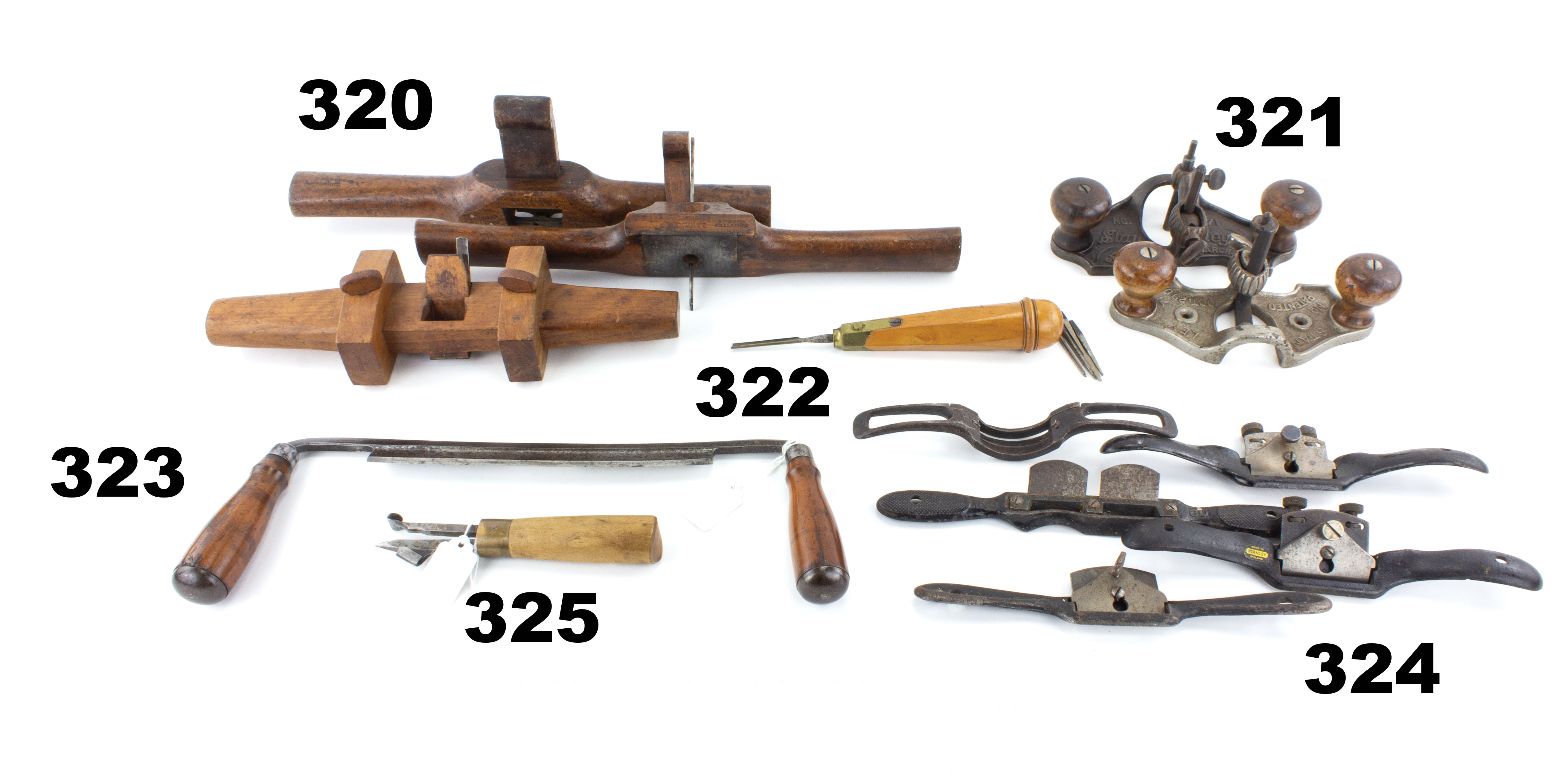 7501-322 Boxwood tool handle. Looks similar to Booth & Mills, boxwood and brass with five bits inside handle. 6-1/2" long, overall clean. Two user name stamps. Good+ (JFS1134) 40-80